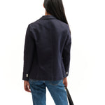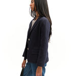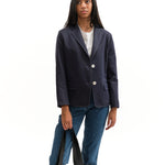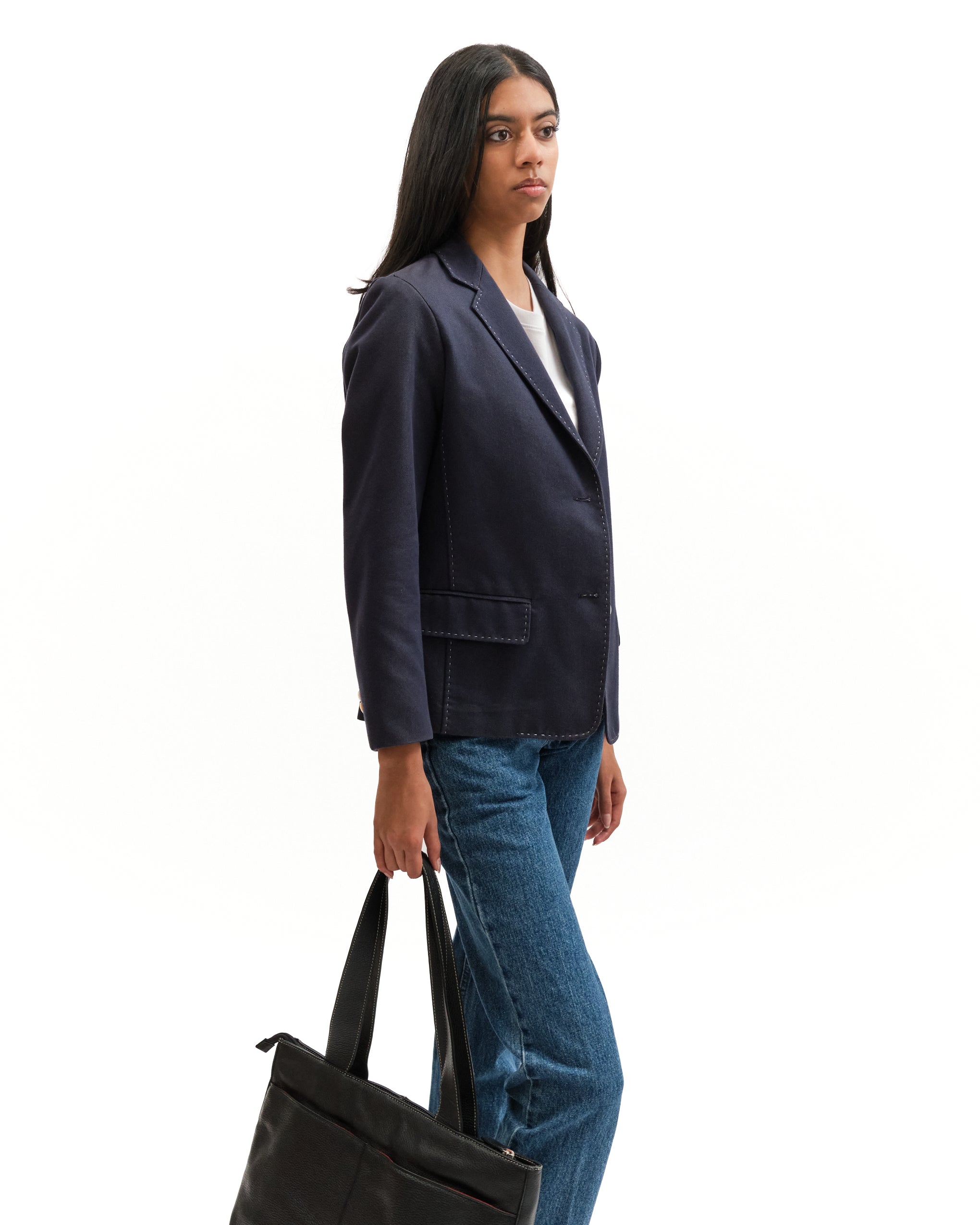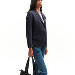 This blazer is sort of denim? And has the most subtle sheen. Very into it.