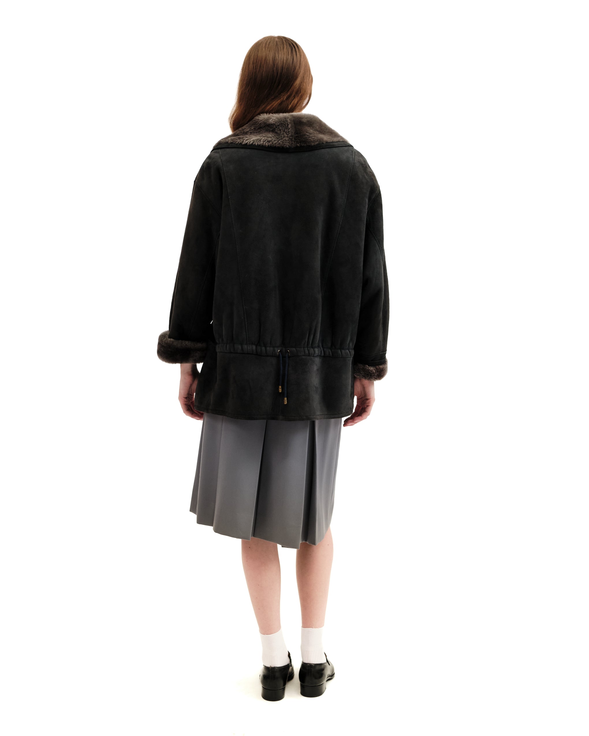 Ultra soft charcoal grey shearling.