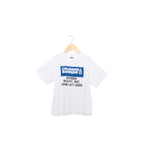 Vintage white tee. Ribbed neck with print on front that reads "Coldwell Banker. Riviera Realty, Inc. (908)477- 2000." Print repeated on back. Label reads "Best, Fruit of the Loom. 10-12. 50% cotton, 50% polyester. Made in the USA."