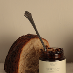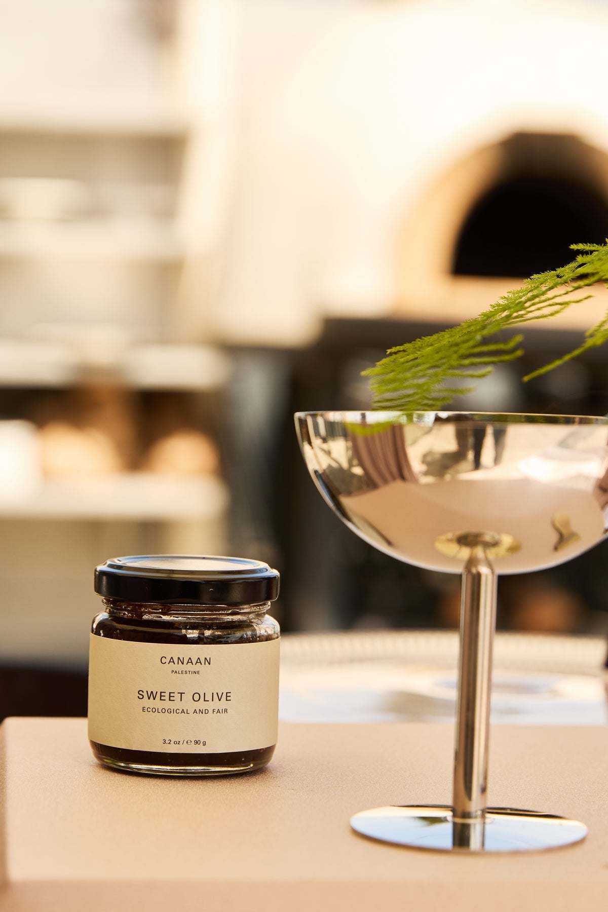 An artistic blend of tree ripened black olives and raw honey gives a unique and memorable experience. The exciting texture draws you in for another bite. Olives naturally ripen on the trees late into the season producing a sweet tasting olive then combined with wildflower honey from Palestine’s rich biodiversity.