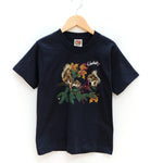 Adorable vintage Woolrich squirrel tee. Navy tee with graphic of squirrels playing on a fir branch with maple leaves. Tying or (untying ??? you be the judge) a ribbon on the branch. In upper left corner reads "Woolrich." Label reads "Fruit of the Loom Best, 10-12, made in the USA, 50% cotton, 50% polyester, machine washable."
